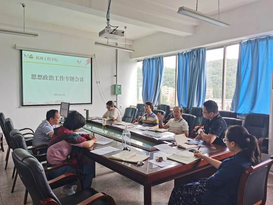 2021年6月24日,机械工程学院召开思想政治工作专题会议,会议由党总支书记熊远兴主持,学院副院长周知进、袁森,副书记巫敏以及各科室负责人参加会议。