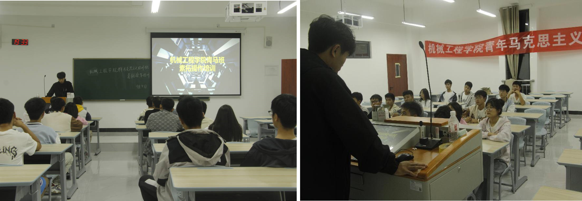 为不断提高我院团学干部综合素质,机械工程学院于11月4日在B01-301教室开展青年马克思主义培训班专题培训。此次培训活动由学生会副主席龙平、素拓部部长田江龙主讲,学院素拓部、文体部干事以及2023级各班班长参加。