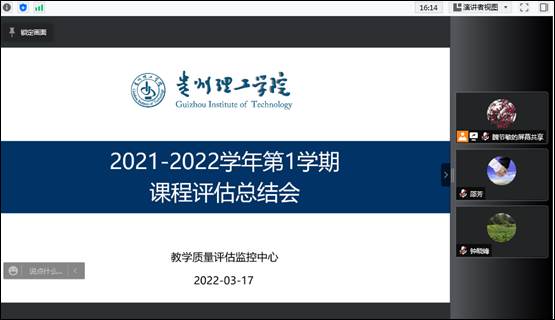 本网讯(教学质量评估监控中心 魏节敏/文 于霞/图)2022年3月17日中午13:00,教学质量评估监控中心召开课程评估线上总结会,会议由中心评估科魏节敏科长主持,专家组全体成员参会。