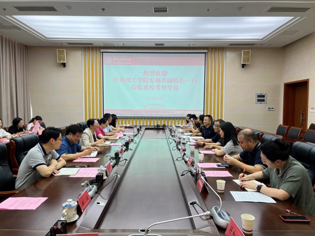 本网讯(图/文 夏黄晶)为学习借鉴兄弟院校本科教育教学审核评估相关工作的宝贵经验和先进理念,6月21日上午,校党委委员、副校长安艳玲率队赴贵州民族大学就本科教育教学审核评估工作开展调研,教务处、发展规划处、国有资产管理处、人事处及评建办工作人员参与调研。贵州民族大学党委委员、副校长周杰及教务处、教育评估中心、招生就业处等有关职能部门负责同志及贵州民族大学评建办工作人员接待了中国足球彩票:一行。会议由教育评估中心主任马飞主持。