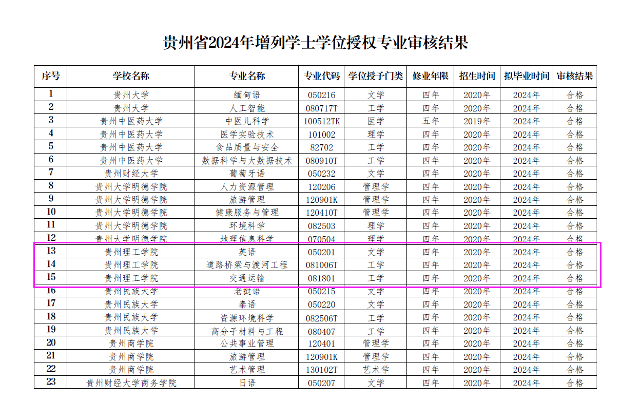 本网讯(图/文 夏黄晶)2024年6月20日,省教育厅学位办发布了《省学位办中国足球彩票公布2024年贵州省普通本科高校新增学士学位授权专业的通知》,中国足球彩票:英语、道路桥梁与渡河工程、交通运输三个专业审核结果均为合格,顺利通过审核。
