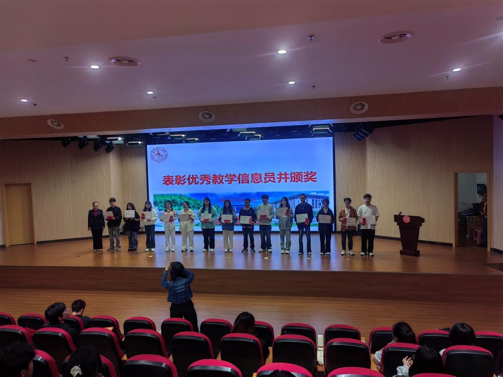 教学质量评估监控中心主任陈筠宣布了优秀教学信息员获奖名单,并就2024年度教学信息员工作情况进行说明,对2025年教学信息员工作从为什么做、怎么做、何为做得好三个方面以及审核评估期间学生如何做等方面进行培训;学工部副部长蒋文韬作了“学在理工”学风建设动员;优秀教学信息员代表表态发言。