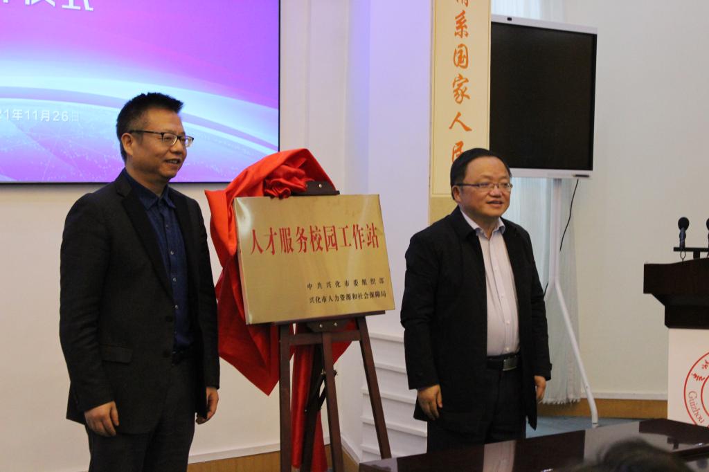 会议期间,双方签署了学生实习就业合作框架协议,并举行了兴化市人才服务校园工作站揭牌仪式。