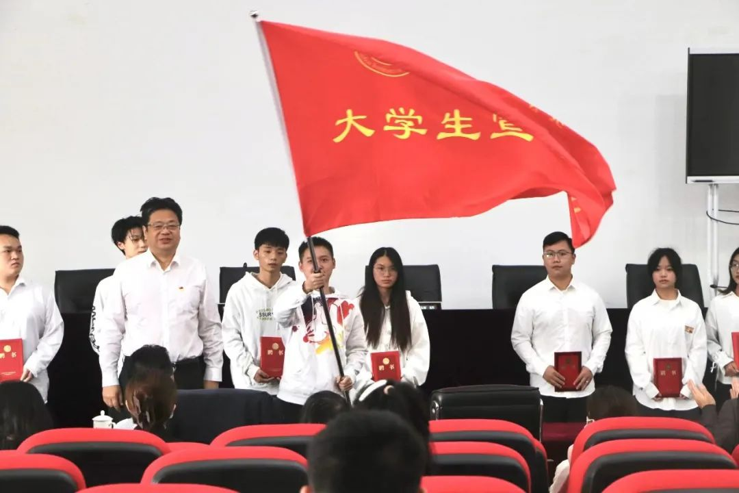 宣讲会后,苏向东为党的二十大精神青年宣讲团授旗,党委副书记高勇为党的二十大精神青年宣讲团成员颁发了聘书。
