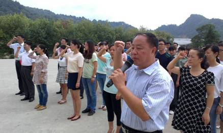 为弘扬尊师重教的良好风尚,激励广大教师热爱教育事业,积极进取,开拓创新,推动学校各项事业全面发展。9月10日正值我国第三十个教师节,学校人事处、教务处、团委组织2014公招全体新进教师在逸夫广场进行了贵州教师誓词宣誓活动,校党委书记曾羽、校长龙奋杰、副校长高克新、纪委书记蒙忠、党委副书记宋广强、党委副书记张波,校长助理刘兴平与新进教师一同宣誓,用这一特别方式来庆祝第三十个教师节。