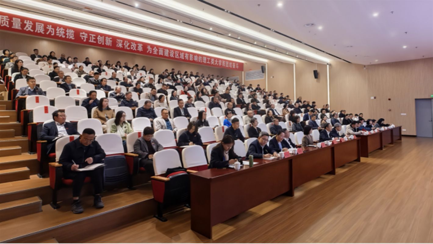 邱国鹏代表省教育厅,对专家组的倾力付出和悉心指导致以诚挚感谢,并对学校近年来本科教育教学工作所取得的成绩给予充分肯定。他指出,本次审核评估中,专家组紧扣评估指标体系核心要素,精准聚焦关键问题,全面深入查找短板不足,对学校进一步深化教育教学改革、提升内涵建设水平、增强办学质量和核心竞争力,具有极其重要的指导意义和实践价值。他强调,一是提高政治站位,牢牢把握立德树人根本任务;二是凸显办学特色,紧扣产业需求,培养高素质应用型人才;三是突出问题导向,以整改实效助力学校高质量发展。他表示,省委教育工委和省教育厅将认真研究专家提出的意见建议,进一步加强对学校审核评估整改工作的指导督促,积极协调解决教育教学及发展中的难点堵点问题,全力推动学校高质量内涵建设迈出更大步伐。