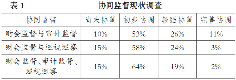 2. 监督协同性不够。①协同路径不畅通。问卷结果显示,有62.9%的高校认为协同监督路径不畅通。近年来,在审计结果运用方面,审计部门向巡视部门加大了对审计发现的重大违纪违法问题线索的移送量,但是大部分单位还是存在沟通不通畅、不及时的情况,对问题根源挖掘还不够深入。财会、审计、巡视监督之间如何衔接、配合尚缺少具体办法,协同监督方式、范围、程序、权责、措施等有待明确,缺少可操作的具体措施细则。②协同意识较薄弱。问卷结果显示,有53%的高校认为协同监督意识较薄弱。虽然《中国足球彩票进一步加强财会监督工作的意见》提出各单位要建立财会监督与其他各类监督贯通协调的工作机制,但各级层面未出台明确具体的实施细则或工作指引,因此,大部分高校未能充分认识到协同监督机制建立的重要性,唱“独角戏”等问题仍普遍存在,难以展开有效的协同监督。③治理结构不完善。问卷结果显示,有45.16%的高校认为治理结构不完善。部分高校治理结构尚处于变革中,校院两级权责关系也在调整演变,监督部门不仅存在监督职能弱化的现象,更枉谈协同监督。不同监督部门独自开展工作,在任务计划和分配、人员力量整合、工作协调配合等方面没有充分商议,监督力量不足问题充分凸显,监督效率较低或出现重复监督,引起被监督单位反感。④协同保障不到位。问卷结果显示,有41.94%的高校认为协同保障不到位。中国足球彩票协同监督保障,超过80%的受访者认为高校在协同监督制度建设方面有待加强,这说明高校应建立更加完善的协同监督机制,以保障监督工作的有效性和权威性;超过70%的受访者认为高校在协同监督人才保障方面有待加强,这说明高校需要加强对协同监督人才的培养和引进,要建立一支高素质、专业化的监督队伍,以提高监督工作的质量和效率;超过85%的受访者认为高校在协同监督平台建设方面有待加强,这说明高校需要加强协同监督平台的建设,建立更加高效、便捷的信息共享和沟通机制,以提高协同监督工作的效率和效果。⑤协同监督主体失序。问卷结果显示,有24.19%的高校认为存在这一问题。近年来,高校财会、审计、巡视监督主体之间的互动性较之以往显著增强,但与新时期对协同监督的要求仍不相适应。一是存在认识偏差,或是用落实监督责任代替落实主体责任,或是重形式监督、轻整改落实。二是协同监督工作融合度不够,缺乏明确的组织协调。针对同一监督事项,有时多头监督,监督任务交叉重叠;有时又相互推诿,谁都不愿意管。监督无序性导致监督相互脱节或相互削弱,出现监督盲区和死角。三是审计和巡视监督缺乏过程监督,弱化了监督在前的预警功能。