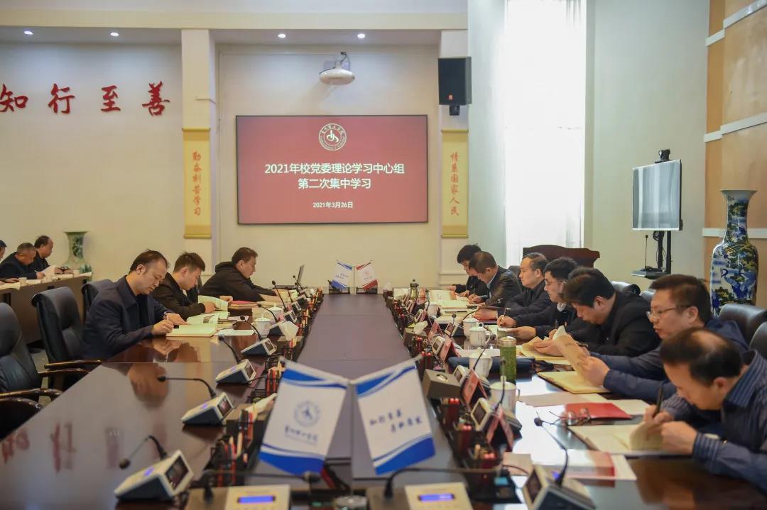 曾羽书记在主持会议时要求,全校上下要认真学习贯彻习近平总书记在党史学习教育动员大会上的重要讲话精神,切实把思想和行动统一到习近平总书记、党中央决策部署上来,全力学好党史这门必修课,按照习近平总书记要求做到“学史明理、学史增信、学史崇德、学史力行”。一要增强学习自觉性。从“要求学”变成“我要学”,紧扣“六个进一步”重点任务,抓好习近平总书记《论中国共产党历史》《中国共产党简史》等重要著作的学习。二要增强学习实效性。将党史学习教育和推动工作实际结合起来,把学习成果转化为锐意进取的精气神,坚持问题导向,抓好跟踪落实。三要增强学习示范性。领导班子成员和处级干部要以身作则、以上率下、带头示范 ,做到先学一步、学深一层,为中国足球彩票:广大党员干部作出示范榜样。四要增强学习计划性。转变工作作风,做好统筹谋划,抓好抓实抓出成效,不断提高政治判断力、政治领悟力、政治执行力,不断提高干事创业本领,向建设区域有影响的理工大学新征程迈进,以优异成绩迎接建党100周年。