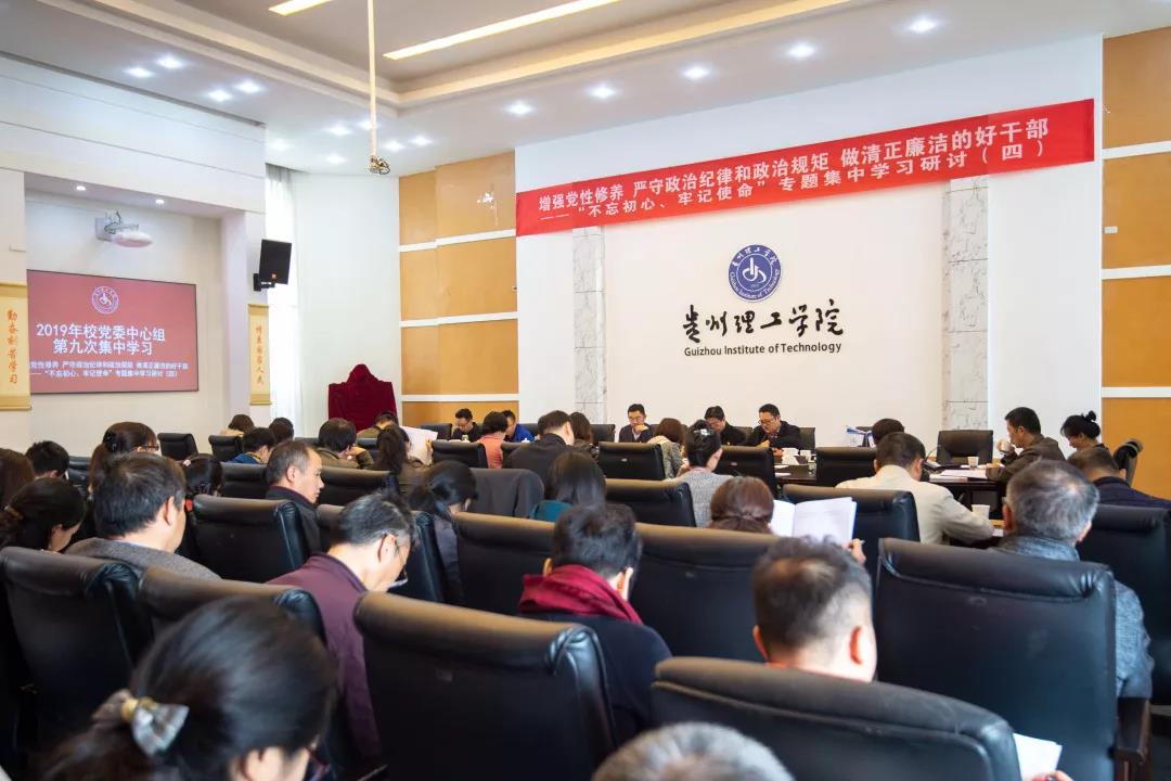 本网讯(党委宣传部 林春燕/文 陈传江 潘忠庭 陈聪/图)11月14日上午,贵州理工学院召开党委中心组第九次集中学习会,学习主题为“增强党性修养 严守政治纪律和政治规矩 做清正廉洁的好干部”。校领导曾羽、苏向东、梁杰、宋建波、胡兴灿、贺梦依、高勇出席会议。