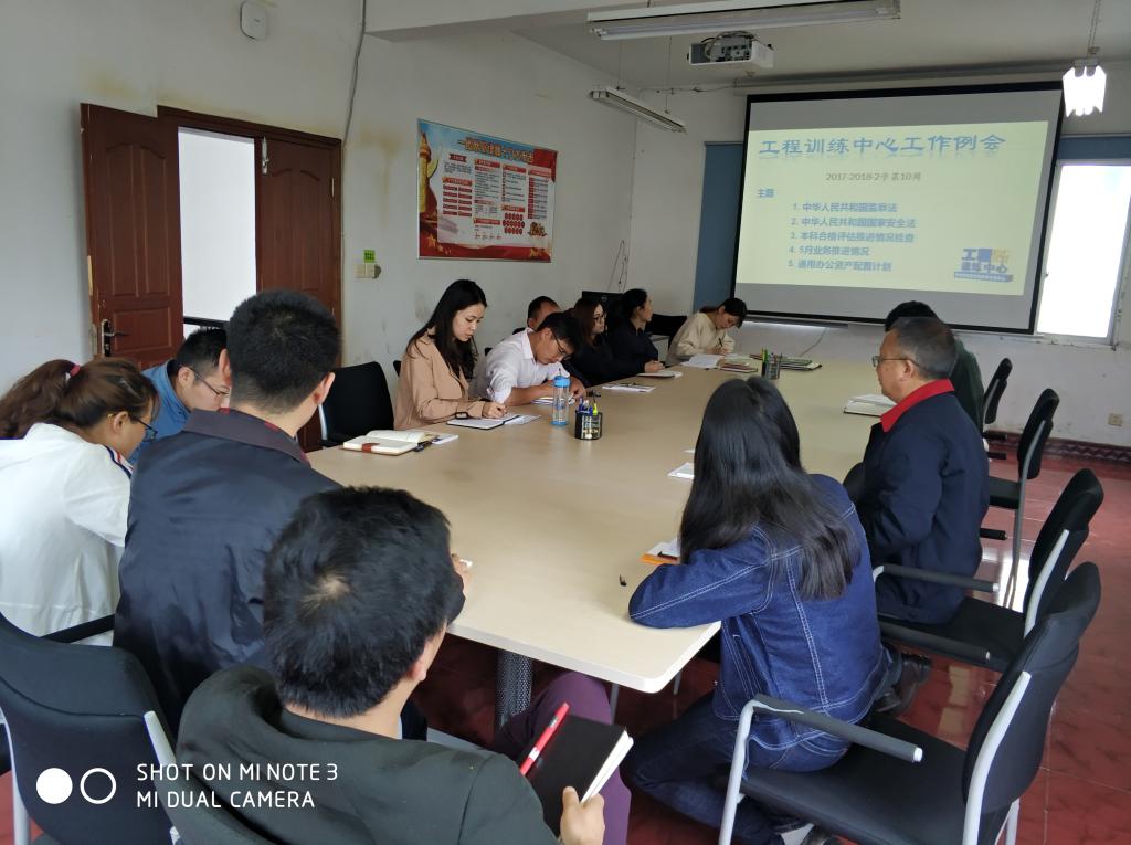 5月上旬至中旬,工程训练中心利用周会,连续两周集中学习宣传《中华人民共和国宪法》、《中华人民共和国监察法》、《中华人民共和国国家安全法》。会议由高兴勇副主任主持,中心全体教职员工参加了学习。
