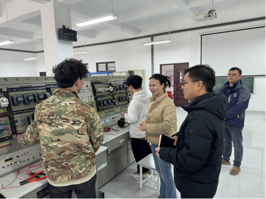 在调研过程中,贺梦依书记深入各个实训区域,详细询问安全保障措施和教学内容落实情况,强调要严守安全“红线”、维护教学秩序,确保师生和设备安全,保障实习教学质量。