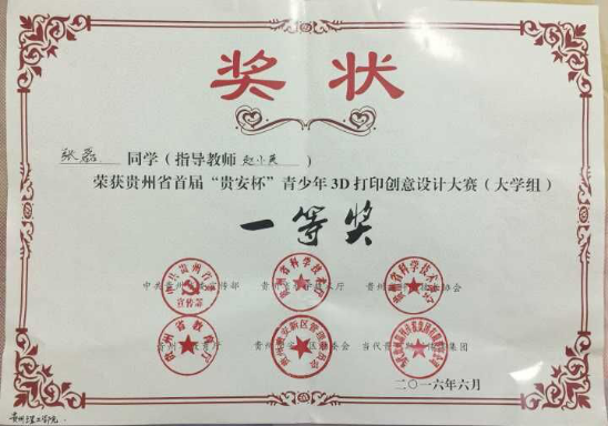 近日,由贵州省委宣传部、贵州省科学技术协会、贵州省教育厅、贵州省科技厅、贵州贵安新区管委会、当代贵州期刊传媒集团主办,大众科学杂志社、贵安新区社会事务管理局、贵州省机械工业学校、贵阳市云岩区少年宫承办的贵州省首届“贵安杯”青少年3D打印创意设计大赛圆满结束。此次比赛对加快我省3D打印、工业机器人等新技术、新装备的宣传普及、有效运用和规模发展,大力培养青少年的创新意识和创意理念,具有积极的推动促进作用。