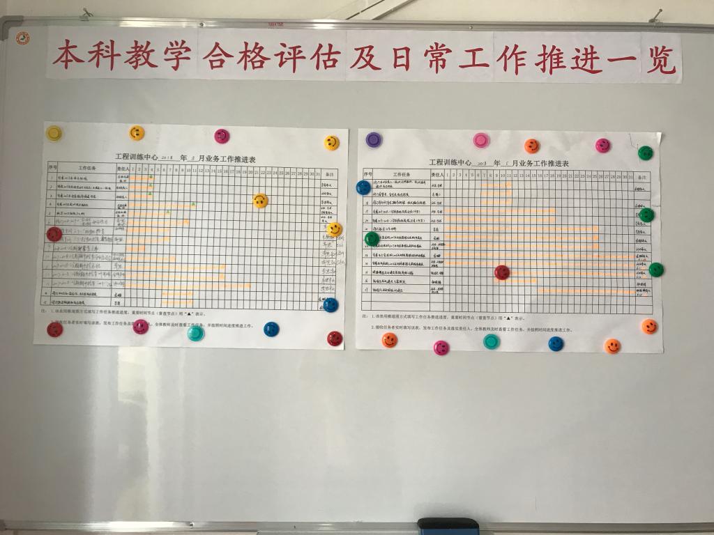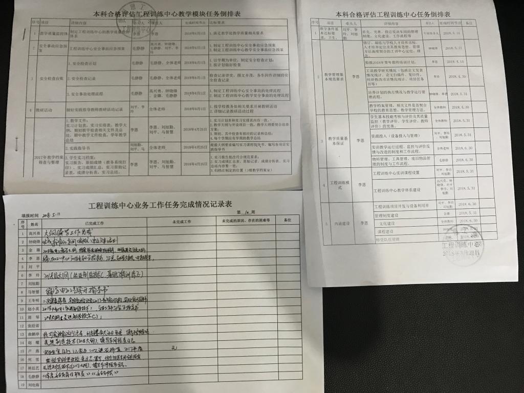 中心办公室、教务科根据学校评估工作任务,结合中心实际情况,制定中心评估任务倒排表,每周记录完成情况,稳步推进评估工作。