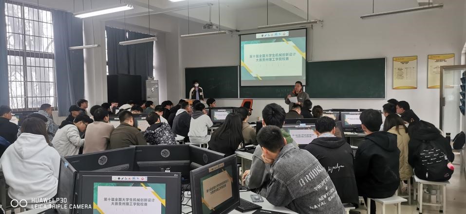 3月24日中午1点,工程训练中心仿真与制造训练室热闹非凡,第十届全国大学生机械创新设计大赛贵州理工学院校级选拔赛初赛正在进行。工程训练中心钟晓锋副主任任评审组长,机械工程学院教师黄彪、邹长星,工程训练中心教师刘旭勤、马智慧、金璐、谢乐共同参与了评审。