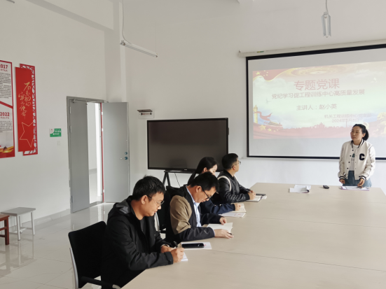(本网讯靳力)根据工作安排,机关工程训练中心党支部于2024年5月8日由党支部组织委员赵小英同志为支部全体党员讲授了“党纪学习教育促工程训练中心高质量发展”专题党课。