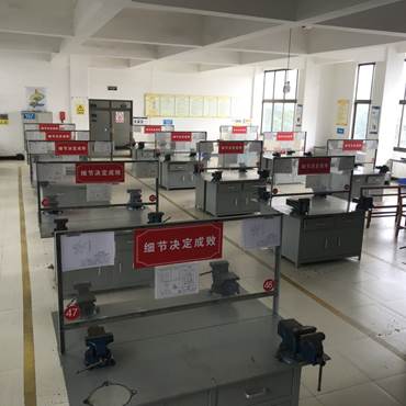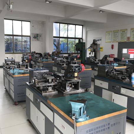 机械拆卸与装配训练室建于2015年,占地面积150m2,拥有10台机械装调技术综合实训平台以及相应配套的工、量具,立式钻床2台,砂轮机1台,钳工台虎钳8台。主要开设的项目有:变速箱的装配与调整、齿轮减速器的装配与调整、自动冲床机构的装配与调整、二维工作台的装配与调整、间歇回转工作台的装配与调整、机械系统运行与调整等。本实训内容紧密结合行业和企业需求,所采用的机械装配实训平台对接国家职业标准,以工业现场的典型任务为实践项目,以实现项目式教学,便于学生在“做中学、学中做”,具有可操作性和实用性。