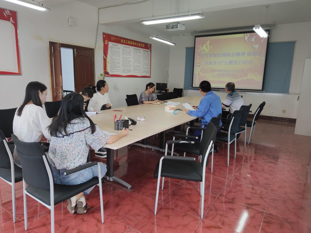 2020年6月29日14:30,机关工程训练中心全体党员教师在中心会议室开展此次主题党日活动。在前期要求全体党员认真自学全国两会主要精神的基础上,支部全体党员又集中学习了习近平总书记“下组团”重要指示精神、2020年政府工作报告、全国政协会议主要精神、全国两会审议通过的主要决议等。通过集中学习后,党员教师们各自发表了学习心得,大家一致表示,深入学习贯彻全国两会精神,准确把握新时代、新方位、新使命。要加强党的领导,强化习近平新时代中国特色社会主义思想引领,注重质量导向。我们要更加紧密团结在以习近平同志为核心的党中央周围,以昂扬的斗志、饱满的热情、旺盛的干劲,奋力开创贵州理工学院高质量发展的崭新局面,不负美好春光,不负伟大时代。要坚定信心、凝聚力量,把学校事业发展的重任扛在肩上,增强忧患意识、展现责任担当,把学习效果转化为促进学校各项事业改革发展、提升学校治理体系和治理能力的动力,为推动学校各项事业高质量发展做出更大贡献。