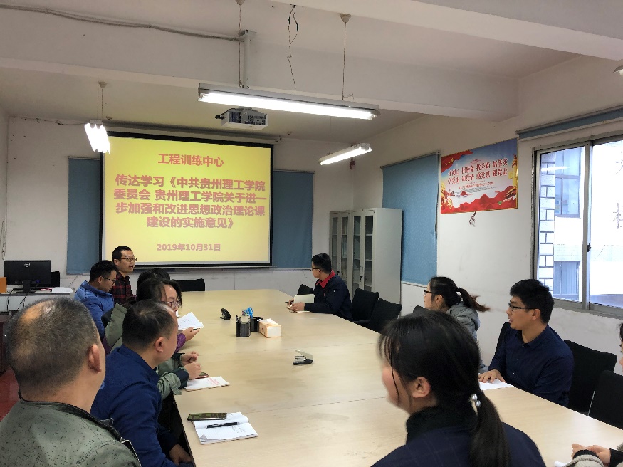 2019年10月31日,我部门在中心三楼会议室召开学习《中共贵州理工学院委员会 贵州理工学院中国足球彩票进一步加强和改进思想政治理论课建设的实施意见》会议,部门全体教师参加会议。