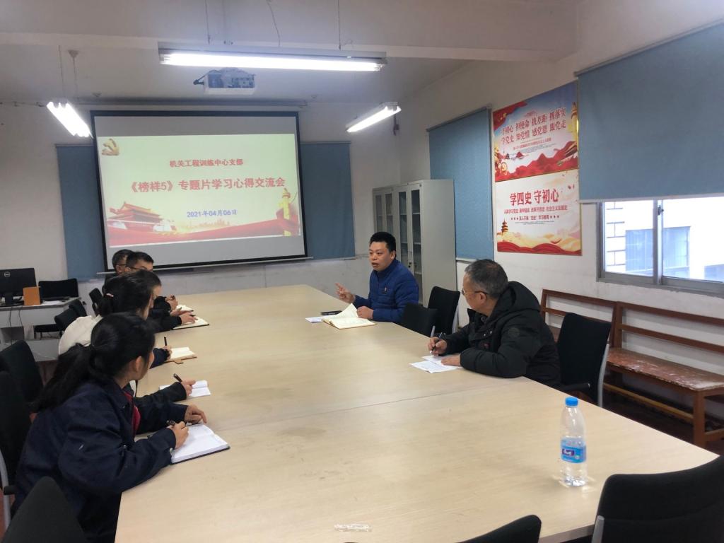 为深入学习贯彻习近平新时代中国特色社会主义思想,全面贯彻党的十九大和十九届二中、三中、四中、五中全会精神,践行以人民为中心的发展思想。机关工程训练中心党支部于4月6日中午在会议室集中观看了《榜样5》专题宣传片,并进行交流讨论。