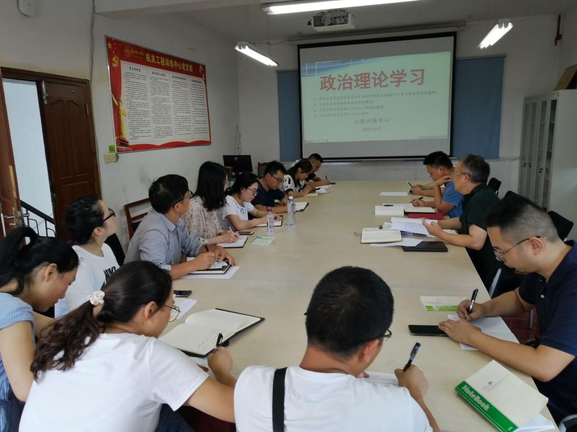 (本网讯 金璐)2021年9月3日,工程训练中心全体教师在会议室301集中学习习近平总书记在庆祝中国共产党成立一百周年大会上讲话精神。高主任的带领大家学习习近平总书记在庆祝中国共产党成立一百周年大会上的讲话精神,教师代表交流发言。