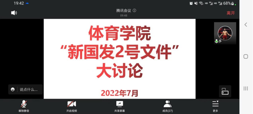 体育学院开展“国发〔2022〕2号文件”讨论会