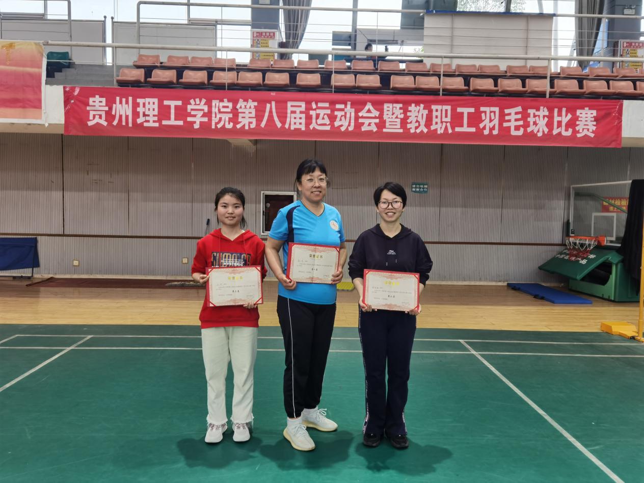羽毛球场上,运动员们身姿轻盈、动作熟练,时而轻轻劈吊、时而大力扣杀,不时赢得场边阵阵喝彩。经过激烈争夺,化工学院唐安江和理学院雷小青分获男女单打第一名,食药学院刘宁国和机械学院蒋宏婉分获男女单打第二名,机械学院李波和食药学院王凤分获男女单打第三名。