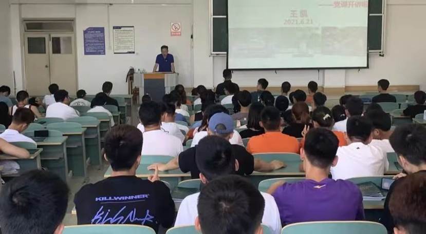 2021年9月21日,体育学院党总支副书记王凯在2教311教室给体育191、体育192、体育201、体育202班的全体成员讲授了一堂生动的党史专题课。