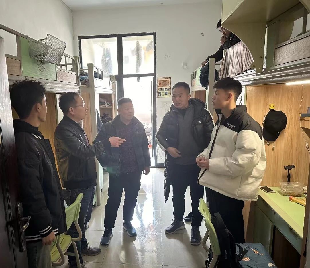 为深入了解学生新学期返校宿舍生活状况,进一步做好学生关怀服务及新学期宿舍安全保障工作。3月3日中午,院党总支书记杨鉴福带队,院领导班子、学生工作队伍等一行深入学生宿舍检查指导宿舍卫生工作,排查安全隐患,走访慰问新学期返校学生,确保学生宿舍安全稳定。