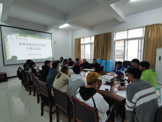 11月4日12:30,体育学院领导与学生干部交谈会在我院会议室正式召开。本次交谈会参会人有体育学院党总支书记任永开、院长高徐、党总支组织员陈晓春、学生科负责人杨骐璟、各班班主任、团总支、学生会各部门部长以及各班班长。会议由陈晓春主持。