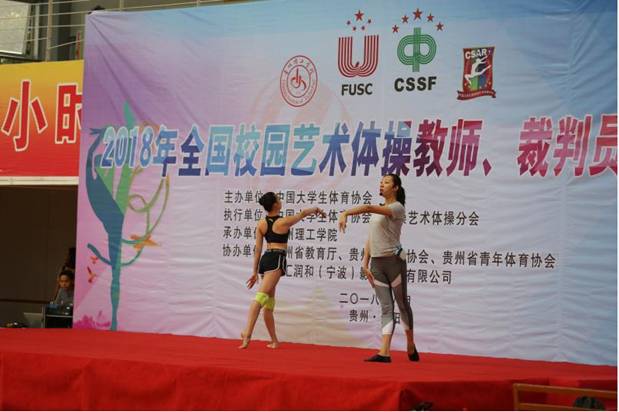 (体教部 赵艳平)8月8日上午,由中国大学生体育协会主办,贵州省教育厅、贵州省体操协会、贵州省青年体育协会、海汇润和(宁波)影视传媒有限公司协办,贵州理工学院承办的2018年全国校园艺术体操教师、裁判员培训班开班仪式在中国足球彩票:逸夫报告厅举行。本次全国校园艺术体操教师、裁判员培训班有来自全国各地大、中、小学校共130多名教师参加。