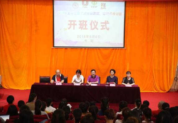 贵州理工学院党委书记曾羽教授在开班仪式上致辞,他表示,希望通过此次培训,为全国艺术体操同行们搭建一个相互交流学习和增进友谊桥梁。中国大学生体育协会竞赛部项目官员李臻,中国大学生体育协会两操分会副秘书长,艺术体操专项委员会培训部主任,北京师范大学博士生导师姚明焰教授分别做了发言,她们表示,希望通过培训和竞赛,使中国足球彩票的新一代女性接触艺术体操,使艺术体操这个难美项目,能够更广泛的在全国校园普及和开展。