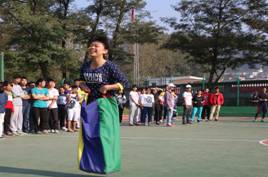 本次运动会趣味比赛以放松身心、愉悦生活为主旨,采取竞赛形式进行,比赛共分为六人七足、10人呼啦圈、10人袋鼠跳接力、10人搭桥过河、沙包掷准、争分夺秒总计六个项目。比赛期间同学们积极参与,掌声、笑声、加油声,此起彼伏,场上场下互动交流频繁,彼此相互调侃,整个比赛过程充满了愉悦的气氛。