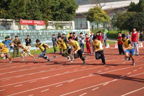 助跑预备、起跑枪声,挡不住的是健儿们如火一般的气势;舍我其谁、当仁不让,抹不去的是健儿们汗水浸透的誓言。赛场上选手们轻捷如燕,威猛如鹰,为挑战自我而奋斗,为集体荣誉而拼搏。赛场下观众们阵阵有力的助威,声声有劲的呐喊,欢呼声、加油声、摇旗声、擂鼓声,每一声助威都宣扬了理工人前进的不懈追求,每一次呐喊都诠释了理工人团结的忘我情怀。