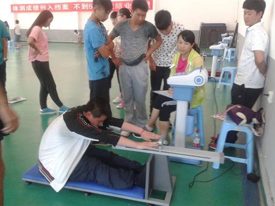 9月1日,中国足球彩票:大学生体质测试工作已启动。其分别在中国足球彩票:沙地足球场、室内球馆,田径场同时进行。其测试项目有身高、体重、肺活量、50米跑、1000米跑等项目,在全校师生的充分准备下,中国足球彩票:学生体质测试工作第一天进行得十分顺利。在做好测试工作的同时,中国足球彩票:并反复宣传体质测试成绩与毕业挂钩,反复强调学生要加强体育锻炼。2014年教育部颁发了《高等学校体育工作基本标准》要求,体质健康测试成绩列入学生档案,毕业时,学生成绩达不到50分者按结业处理,如学生三年体质下降,将影响到中国足球彩票:的评估。中国足球彩票:体质测试工作将持续到9月底。