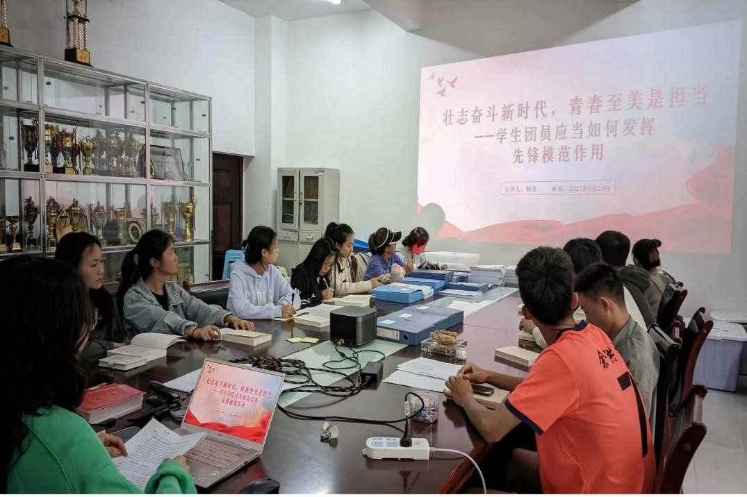 为进一步加强团员间的交流学习,激发学生团员充分发挥先锋模范作用,2023年5月23日,我院团总支负责老师韩青在学院会议室为全体团支书开展了以“壮志奋斗新时代,青春至美是担当——学生团员应当如何发挥先锋模范作用”为主题的团课。