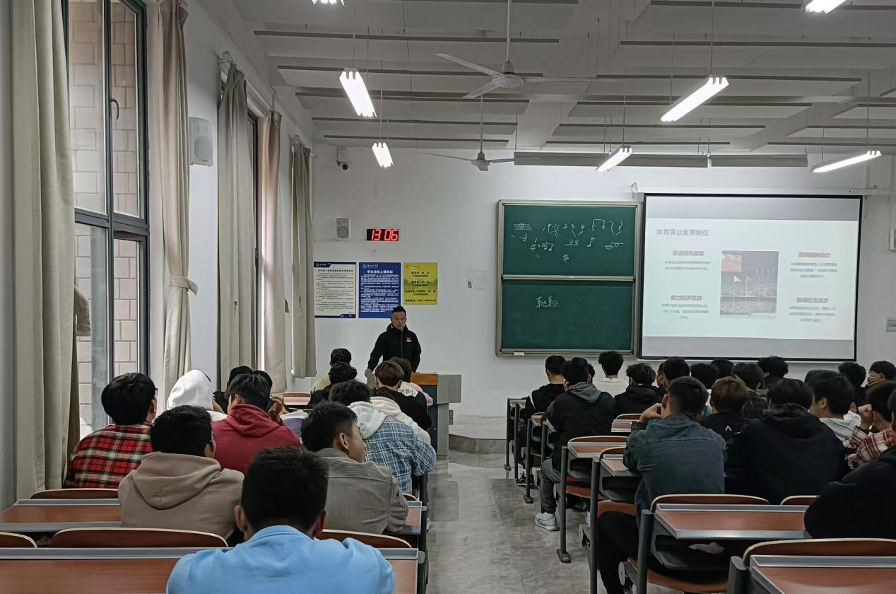 讲座上,刘世多院长为同学们深入解读了体育强国与民族复兴宏伟蓝图的紧密联系及其互动作用,强调了体育在国家发展战略中的核心地位与不可或缺的重要性,并对体育在提升国家软实力方面进行了详尽分析。