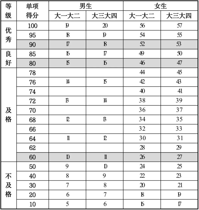 注:大学男生为引体向上,女生为仰卧起坐。