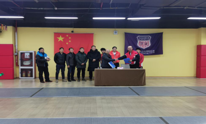 贵州理工学院体育学院高徐院长与贵州斗点击剑俱乐部总经理任伟签署合作协议