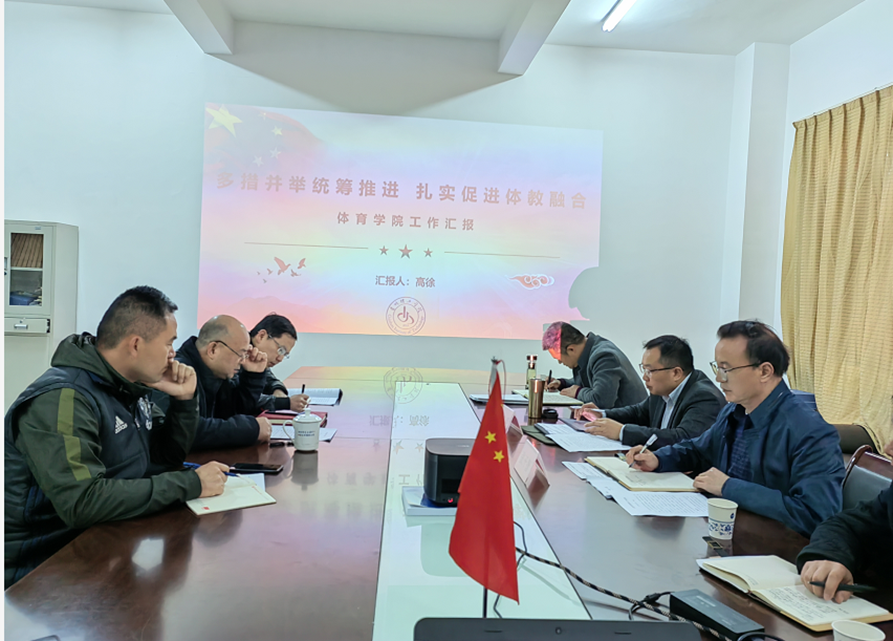 3月24日上午,校长潘良明、副校长张开智一行到体育学院作调研并指导工作,学院党政班子及各科室负责人参加调研座谈会。