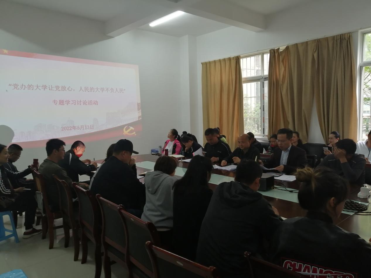 2022年5月13日,体育学院在会议室开展了“党办的大学让党放心,人民的大学不负人民”专题学习讨论活动,活动由体育学院党总支副书记王凯主持,学院领导班子和全体教师参加此次活动。
