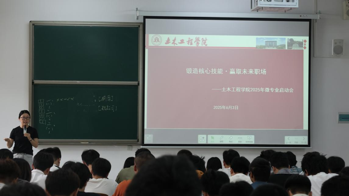 本网讯(土木工程学院 文/舒子涵 王鹤凯 图/杨应江)2025年6月3日,土木工程学院在开物楼1107举行“锻造核心技能,赢取未来职场”主题微专业启动会。本次会议标志着学院2022级学生微专业正式进入实施阶段。土木工程学院院长贺明卫,卢云、沈汝伟、刘吉、黎伞伞、刘旭、程国锋6位微专业班主任、2022级学生参会,学生科副科长秦丽丽主持会议。