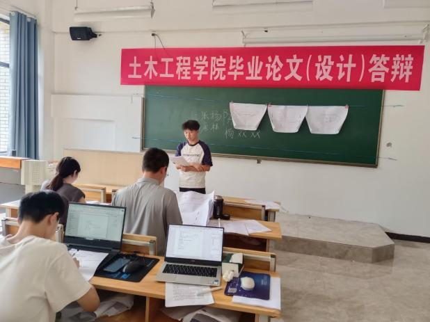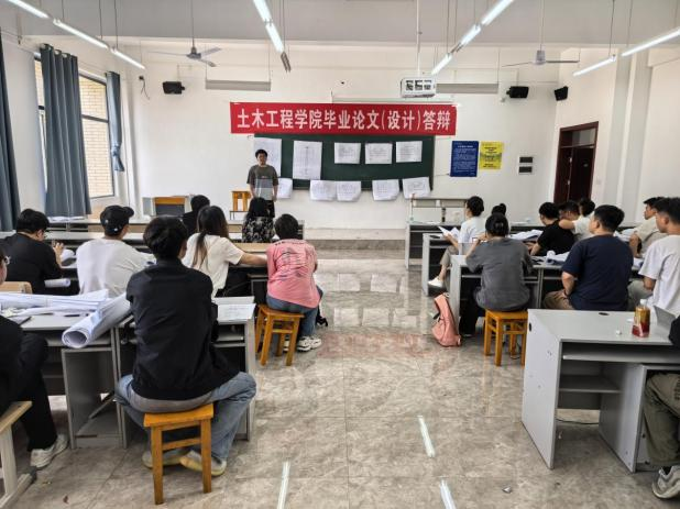 本网讯(土木工程学院 /沈汝伟 文/沈汝伟)毕业论文(设计)是本科人才培养方案的重要组成部分,既是对学生综合运用理论、知识与方法的全面检验,更是集中训练学生综合实践、科学研究和创新能力的必要教学环节。根据学校教学工作安排,2025年6月9日至11日,土木工程学院开展了2025届本科毕业论文(设计)答辩工作。本次答辩设立8个答辩组,组织土木工程、道路桥梁与渡河工程、水利水电工程三个专业的学生顺利完成了答辩。学院答辩委员会与教学督导组对答辩工作进行了全程指导与督查。