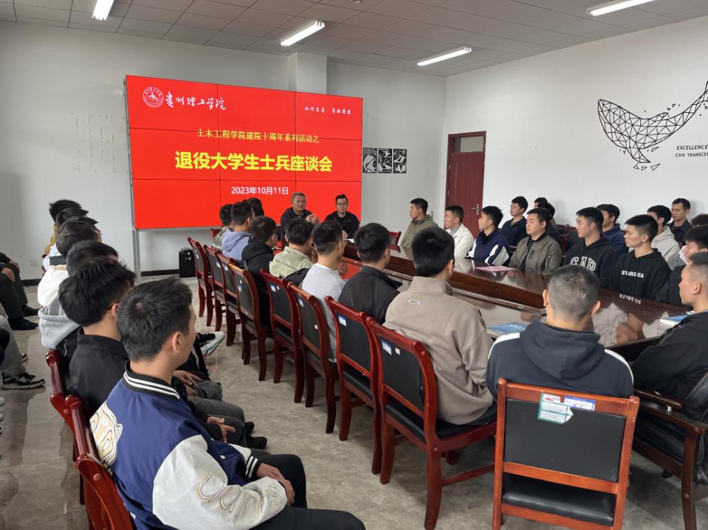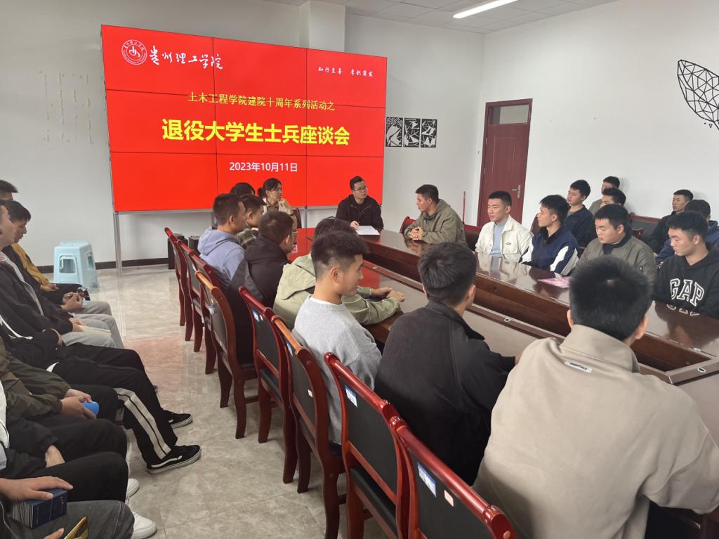 本网讯(土木工程学院 图/王东源 文/王东源)2023年10月11日中午,土木工程学院在敏行楼G3547会议室召开退役大学生士兵座谈会。土木工程学院党总支书记彭勇、党总支副书记杨文斯、辅导员吴立过、杨介男及土木工程学院全体退役大学生士兵参会。