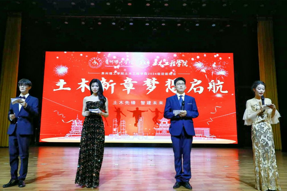 本网讯(土木工程学院 文/周椿云 杨颜挺 图/杨天红 姚仕念 张秀林)10月24日晚,土木工程学院在蕴华楼大礼堂成功举办了“土木新章·梦想启航”2024级迎新晚会,为同学们带来了一场精彩纷呈的视听盛宴。学院党总支书记彭勇、院长贺明卫、副书记杨文斯、跟岗副院长张玥,教师代表、辅导员、班主任及全体2024级学生、部分高年级学生和其他学院学生参加。