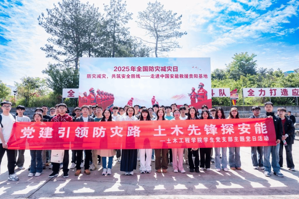 本网讯(土木工程学院 文/王鹤凯 图/王鹤凯 杨天红)在第17个"全国防灾减灾日"来临之际,2025年5月11日,土木工程学院学生党支部师生党员、入党积极分子和退伍军人共计50人赴中国安能集团贵阳救援基地开展“党建引领防灾路·土木先锋探安能”主题党日活动。