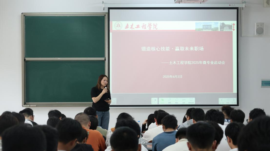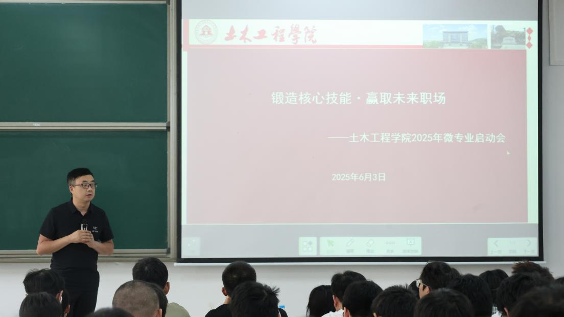本网讯(土木工程学院 文/舒子涵 王鹤凯 图/杨应江)2025年6月3日,土木工程学院在开物楼1107举行“锻造核心技能,赢取未来职场”主题微专业启动会。本次会议标志着学院2022级学生微专业正式进入实施阶段。土木工程学院院长贺明卫,卢云、沈汝伟、刘吉、黎伞伞、刘旭、程国锋6位微专业班主任、2022级学生参会,学生科副科长秦丽丽主持会议。