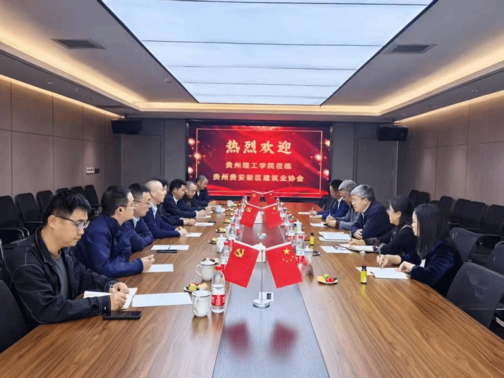 本网讯(土木工程学院 图文/土木工程学院)5月30日下午,校党委副书记任洲麒同志率土木工程学院党总支书记彭勇、经济管理学院党总支书记周红、建筑与城市规划学院党总支副书记章丽娥等一行赴贵州贵安新区建筑业协会开展访企拓岗合作交流。