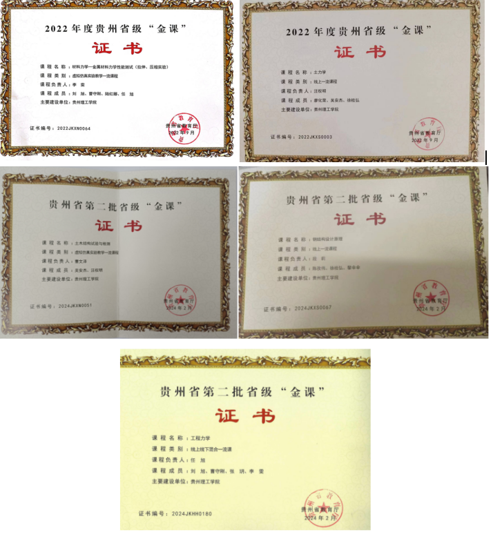 本专业的课程体系符合《工程教育认证通用标准》和《土木类教学质量国家标准(土木工程专业)》要求,课程体系的设计、实施及修订有企业和行业专家的参与,深入对接行业需求。专业核心课程覆盖力学、测绘、材料、结构工程学和计算机等学科内容。其中建成《材料力学》《土力学》《土木结构实验与检测》《钢结构设计原理》共计5门省级金课,《高层建筑结构》《建筑结构抗震》及《BIM原理与应用》3门校级一流课程。拥有《土木工程材料》等自编教材4部。