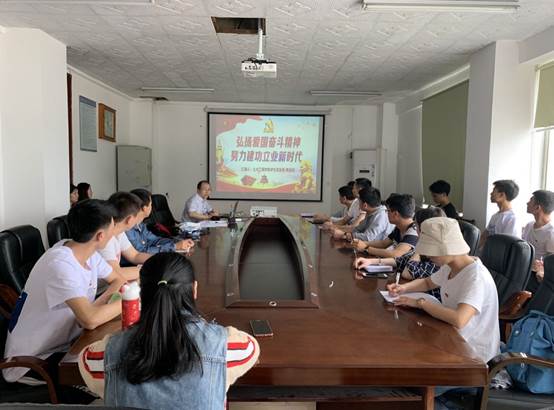本网讯(土木学院 文/蒋佳桐 图/蒋佳桐)《祖国在心中·与校共成长·同心迎评估》(贵理工组通〔2019〕6号)文件要求,2019年4月23日中午13点30分,土木工程学院学生党支部全体党员在1229会议室开展《弘扬爱国奋斗精神,努力建功立业新时代》之专题党课,本次党课由土木学院学生党支部黄念庆同志担任主讲人。