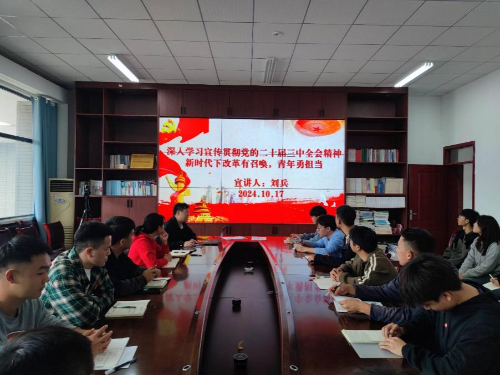 本网讯(土木工程学院 图/杨天红 文/刘兵 顾英)10月17日中午,土木工程学院和人工智能与电气工程学院在敏行楼3547会议室成功举办了一场别开生面的党的二十届三中全会精神联合宣讲活动,土木工程学院全体学生党员积极参与,共同学习、领悟全会精神。本次宣讲活动邀请人工智能与电气工程学院学生科科长、团总支书记顾英和土木工程学院辅导员刘兵主讲。